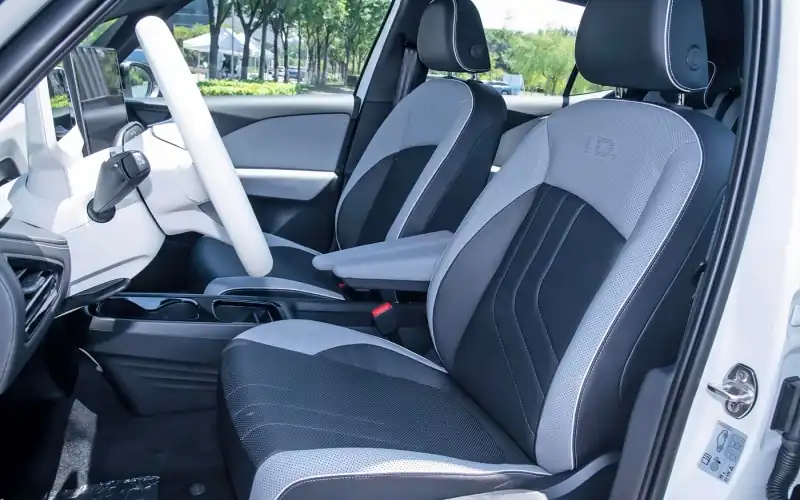 El Volkswagen ID.3 Pro S apuesta por un diseño minimalista con cuadro digital y pantalla central flotante. Los asientos combinan tela y piel para equilibrar transpirabilidad y confort. Elementos como carga inalámbrica, doble portavasos y salidas traseras de aire demuestran atención al detalle familiar.