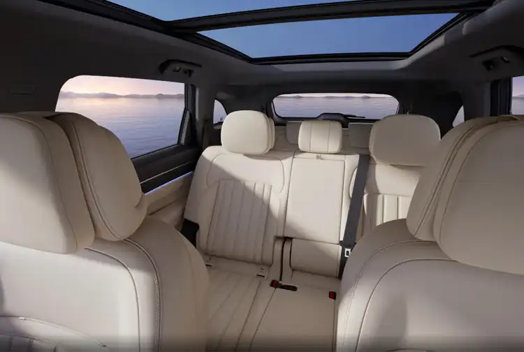El interior de la cabina es el principal atractivo de la versión insignia de cinco asientos. La disposición 2+3 elimina la tercera fila, liberando significativamente el espacio para las piernas en la segunda fila y ampliando el maletero. Un ocupante de 1,80 m sentado en el asiento del conductor, ajustado a la posición más baja, aún cuenta con una distancia libre al techo de aproximadamente un puño y cuatro dedos. Manteniendo el asiento delantero en la misma posición, ese mismo ocupante al pasar a la segunda fila encuentra un espacio para las piernas superior a dos puños, con suficiente espacio para cruzar las piernas cómodamente; la altura libre sobre la cabeza sigue siendo de aproximadamente un puño y dos dedos — un rendimiento casi líder en su categoría que garantiza que cada pasajero viaje con relajación y libertad en trayectos largos. Los asientos están tapizados en cuero sintético de alta calidad, con costuras precisas y textura fina.