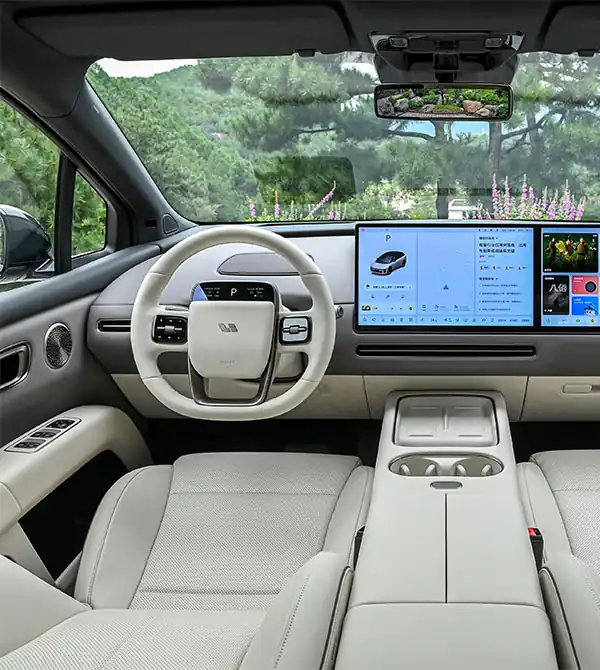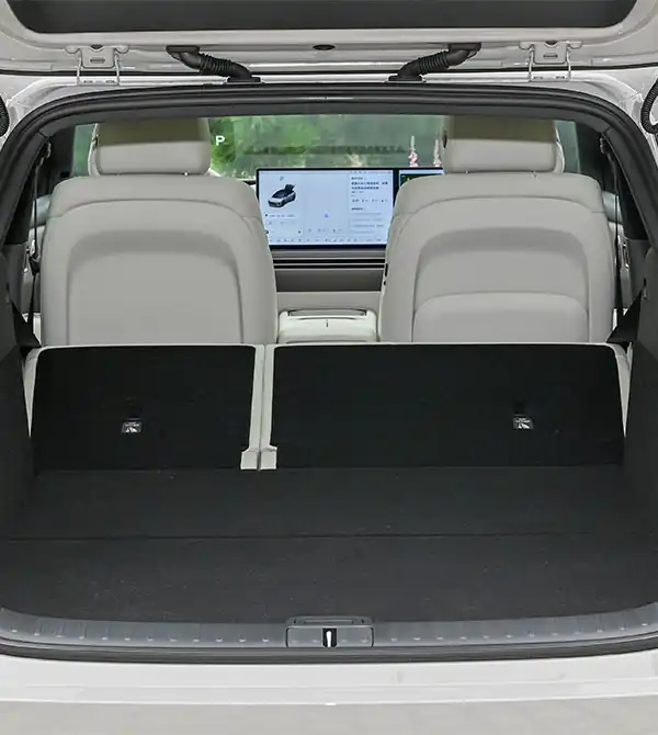 El Li i6 interior eleva el confort para la familia. El habitáculo delantero monta dos pantallas OLED de 15,7 pulgadas con el chip Qualcomm 8295P, ofreciendo respuesta por voz en 0,8 s. La consola central incorpora portavasos ovales y dos cargadores inalámbricos de 50W, más prácticos para varios ocupantes que el diseño cilíndrico del Li i8. Los asientos traseros tipo “queen” con ajuste eléctrico pueden incluir ventilación, calefacción, masaje y reposapiés; con la batalla de 3000 mm y más de un metro de espacio para las piernas, el espacio trasero alcanza un nivel similar al de primera clase. La pantalla trasera de 21,4 pulgadas con Dolby Vision 3K y conectividad para juegos, junto al frigorífico de doble temperatura de serie, refuerzan la practicidad premium. En muchos Li i6 review, se celebra que el espacio longitudinal interior supere los 3,3 m y que el maletero alcance 650 L, calificándolo como “dimensiones ideales para viajes familiares”. Con la función V2L de 3,5 kW, el Li i6 se adapta perfectamente a acampadas y usos multi-escenario.