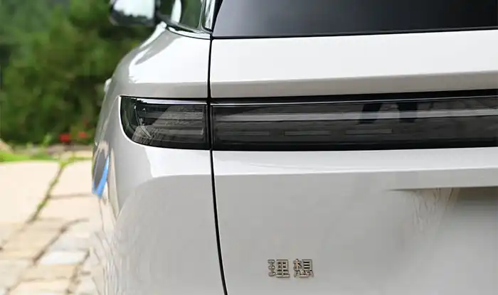 La zaga del Li i6 equilibra funcionalidad y fuerza visual. Las luces traseras de ancho completo con relieve 3D guardan correspondencia con la banda frontal mediante guías de luz internas, ofreciendo alta identificación nocturna. El parabrisas trasero muy inclinado se integra con el spoiler, y el paragolpes inferior con aspecto de difusor mejora la aerodinámica y la postura coupé. Las líneas cóncavas del portón aportan mayor profundidad y la eliminación del marco tradicional de matrícula simplifica el conjunto. La luz de freno elevada en banda vertical refuerza la seguridad y subraya la vocación tecnológica del modelo.