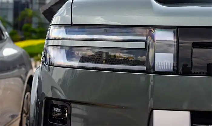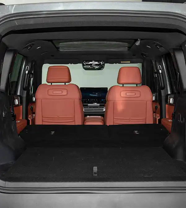 En la parte trasera, el diseño cuadrado combina con el techo flotante para transmitir una presencia robusta. El portón trasero de apertura lateral incorpora una caja de almacenamiento externa, subrayando su posicionamiento todoterreno. En el interior del portón, una toma de corriente de 220V y ganchos plegables ofrecen comodidad para guardar equipo de exterior. Los pilotos traseros de doble capa, conectados por una moldura negra, hacen eco del diseño frontal. La placa protectora trasera plateada y el sistema de escape oculto acentúan aún más la sofisticación de un SUV urbano.