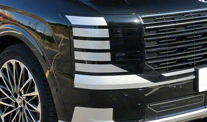 El Hyundai Palisade 2026 2.5T AWD Premium Edition – 7 plazas tiene un exterior altamente reconocible, con luces diurnas verticales DRL combinadas con una parrilla cromada en forma de corona, realzando su sensación de lujo. La carrocería presenta ángulos marcados, líneas rectas y pasos de rueda pronunciados que destacan la robustez, mientras que el techo flotante añade un toque moderno. Las luces traseras verticales ahumadas hacen eco del diseño frontal, y el escape oculto aporta una postura más elegante, dando como resultado un conjunto visual muy distintivo.