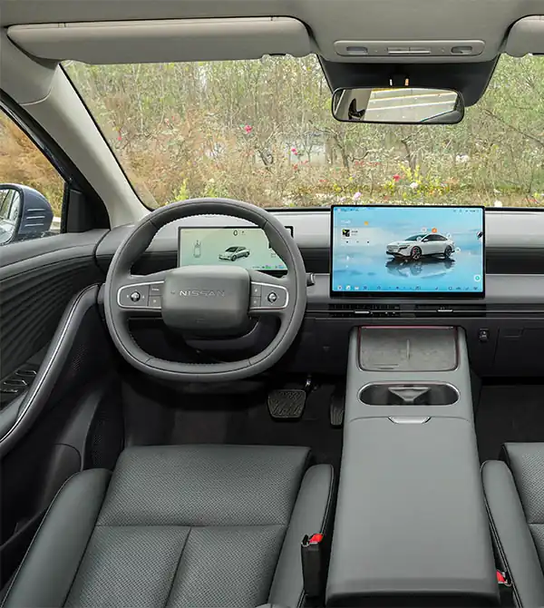 Al ingresar, la cabina de 360° naturalmente envolvente es acogedora. Grandes superficies blandas con esquinas redondeadas, combinadas con dos esquemas de color clásicos—blanco crema y negro—crean un ambiente cálido y hogareño. Tecnología y practicidad logran un equilibrio perfecto: la pantalla flotante central de 15.6 pulgadas 2.5K ofrece alta resolución y operación fluida. El sistema corre en NISSAN OS con chip Qualcomm Snapdragon 8775 y soporta conectividad multiplataforma incluyendo Huawei HiCar y Apple CarPlay, adaptándose bien a los hábitos de diferentes usuarios.