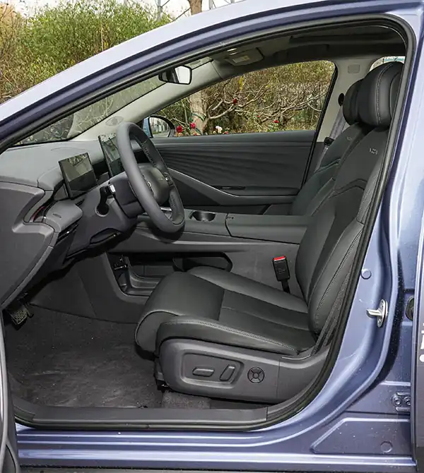 El espacio es una de las principales ventajas del Nissan N6. Una persona de 180 cm tiene aproximadamente un puño y un dedo de espacio para la cabeza en el asiento delantero, mientras que el espacio para piernas trasero supera dos puños. El piso plano asegura que el pasajero central no tenga que encoger las piernas, proporcionando una experiencia de viaje cómoda y relajada. Los asientos continúan con la herencia de “sofá móvil” de Nissan, soportando masaje de 12 puntos, ventilación y calefacción, y ajuste eléctrico en 14 direcciones, satisfaciendo plenamente las necesidades de confort de conductores y pasajeros.