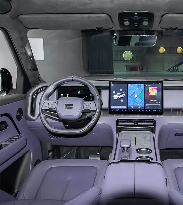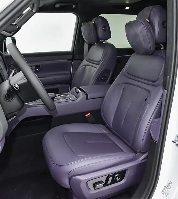 Al entrar en el habitáculo, el ROX ADAMAS 2026 no rompe con la arquitectura clásica del interior, sino que crea una nueva atmósfera de lujo gracias a una renovación integral de colores y materiales. El nuevo esquema de color “Púrpura Galaxia” es un auténtico punto destacado, combinado con cuero NAPPA de primera capa y un techo revestido en microfibra tipo ante, ofreciendo un tacto suave y una apariencia altamente sofisticada, dejando atrás la sensación opresiva de los interiores oscuros tradicionales.