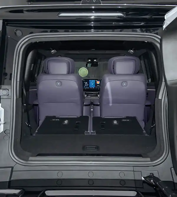 El diseño trasero continúa con los elementos clásicos de la marca. La forma cuadrada y sólida armoniza perfectamente con el frontal y el perfil lateral. El portón trasero de apertura lateral, característico de los SUV todoterreno, junto con la rueda de repuesto externa opcional, refuerza el espíritu aventurero del vehículo. Las luces traseras en forma de L invertida ofrecen una alta identificación visual, mientras que el sistema Outdoor Kitchen 2.0 integrado en el portón, con mesa plegable e iluminación LED, se adapta perfectamente a escenarios de camping y ocio al aire libre, convirtiendo al vehículo en un auténtico “centro de vida móvil” que conecta la ciudad con la naturaleza.