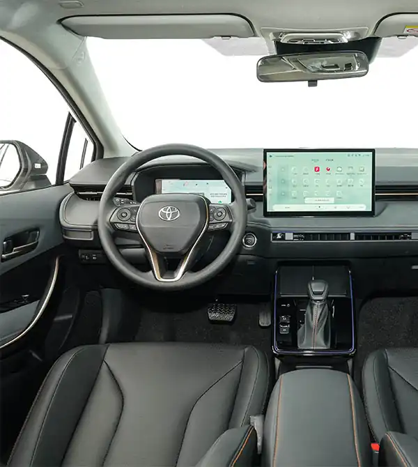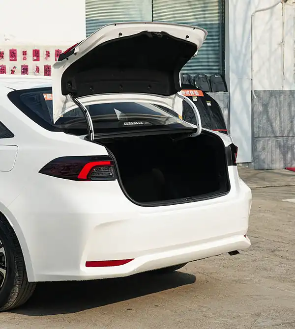 El perfil lateral también destaca y es clave para reforzar la deportividad del Corolla 2026. El techo flotante en el pilar C junto con la carrocería bitono aporta una silueta dinámica tipo coupé. Las dimensiones se ajustan a 4635 × 1780 × 1435 mm, con una distancia entre ejes de 2750 mm, 50 mm más que antes. Gracias a la optimización del diseño de los asientos, el espacio para las piernas en la parte trasera mejora de forma notable. Además, el modelo equipa llantas deportivas de 18 o 19 pulgadas, reforzando la sensación de musculatura y potencia. En pruebas reales, un pasajero de 175 cm disfruta de más de dos puños de espacio para las rodillas, y el maletero puede ampliarse hasta 470 litros con los asientos abatidos, cubriendo sin problemas las necesidades diarias y familiares.