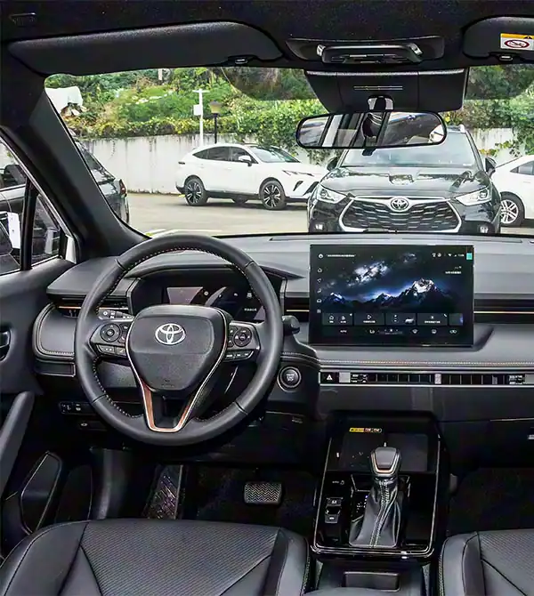 En el interior, el Toyota Frontlander 2026 abandona el estilo “desnudo” de la versión anterior, con mejoras en materiales y diseño que crean un habitáculo lujoso. El tablero presenta un nuevo diseño de pliegues lisos, con materiales blandos en áreas clave como el panel de instrumentos y el volante. Las salidas de aire delgadas reducen la sensación visual de grosor. Los asientos delanteros se han rediseñado para mejorar el soporte lumbar y lateral. La cabina se complementa con iluminación ambiental de 64 colores y carga inalámbrica de 50 W. La pantalla táctil central flotante de 12,9 pulgadas con el chip Qualcomm Snapdragon SA8155P es compatible con CarPlay, HUAWEI HiCar 5.0 y ICCOA Carlink, complementada por un panel de instrumentos digital de 8,8 pulgadas y sistema de interacción por voz inteligente, formando un ecosistema completo de cabina inteligente. La distancia entre ejes de 2640 mm asegura amplio espacio para las piernas en la parte trasera, con relleno de asientos optimizado para un confort excepcional en viajes largos.