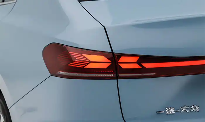La parte trasera también destaca: el Volkswagen Sagitar S incorpora un conjunto de luces traseras continuas con efecto dinámico e interactivo, que al encenderse ofrecen una fuerte sensación tecnológica y una excelente visibilidad nocturna. El paquete decorativo en negro del paragolpes trasero está muy bien integrado, equilibrando la tecnología de las luces con la tradicional sobriedad de Volkswagen. La estructura interna de las luces traseras presenta un diseño exclusivo, con formas distintivas en ambos lados, que permiten reconocer el modelo incluso sin estar iluminado. El pequeño alerón tipo “cola de pato” se conecta visualmente con el estilo deportivo del frontal, logrando una estética coherente, elegante y rica en detalles.