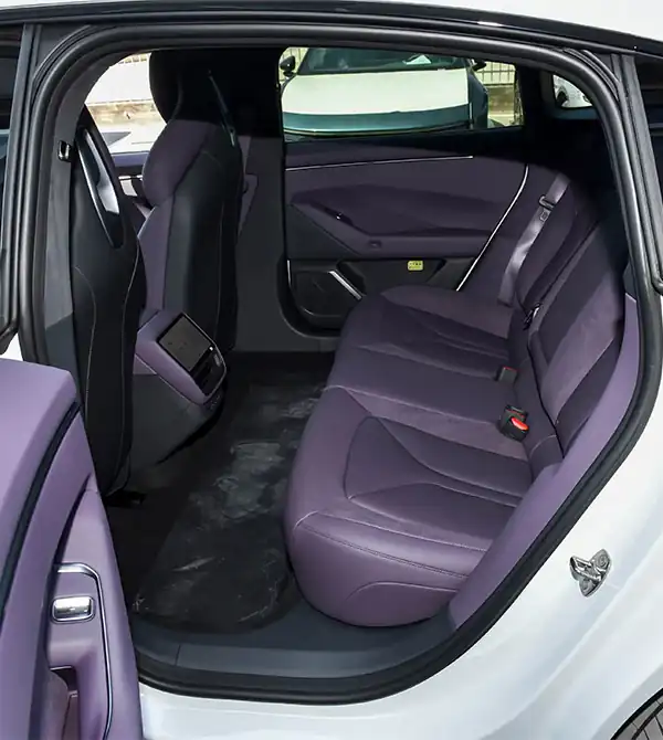 La parte trasera mantiene coherencia con el diseño frontal: la luz continua presenta una disposición interna meticulosa de sus elementos luminosos y admite efectos dinámicos de iluminación. Además, se puede equipar opcionalmente un alerón trasero eléctrico ajustable en 10 niveles, que se eleva automáticamente a alta velocidad para mejorar la carga aerodinámica. Su coeficiente de resistencia extremadamente bajo no solo mejora la autonomía, sino que también refuerza su carácter deportivo.