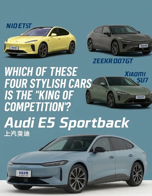 Cuatro potentes vehículos totalmente eléctricos: Audi E5 Sportback, Xiaomi SU7, NIO ET5T y Zeekr 007 GT Cuatro vehículos eléctricos de alto rendimiento: Audi E5 Sportback, Xiaomi SU7, NIO ET5T y Zeekr 007GT