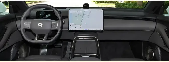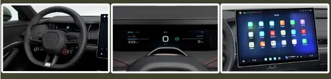 En el interior, la pantalla central pasa de un formato vertical de 12,8” a uno horizontal de 15,6”, más armónico y moderno. El sistema integra el chip Qualcomm 8295 y Cedar OS, con una nueva interfaz, funciones de pantalla dividida, menús desplegables y barras personalizables.